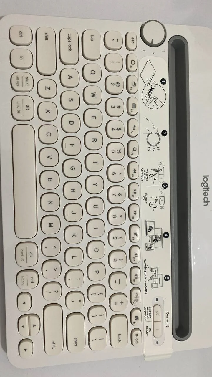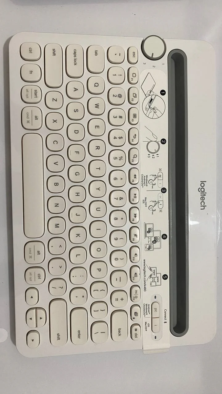 کیبورد Logiteck 480 multi device وایرلس اتصال ازطریق بلوتوث به همه وسایل/تنظیم و اتصال همزمان به صورت پیش فرض به سه تا دستگاه/قابل اتصال به کامپیوتر .لپتاپ.تبلت .گوشی موبایل{اندروید و آیفون} و هر وسیله ای که بلوتوث داشته باشه/لاجتیک اصلی درجه یک/موجود در دورنگ سفید و مشکی/گریدA+++/جهت خرید عمده تماس حاصل فرمایید